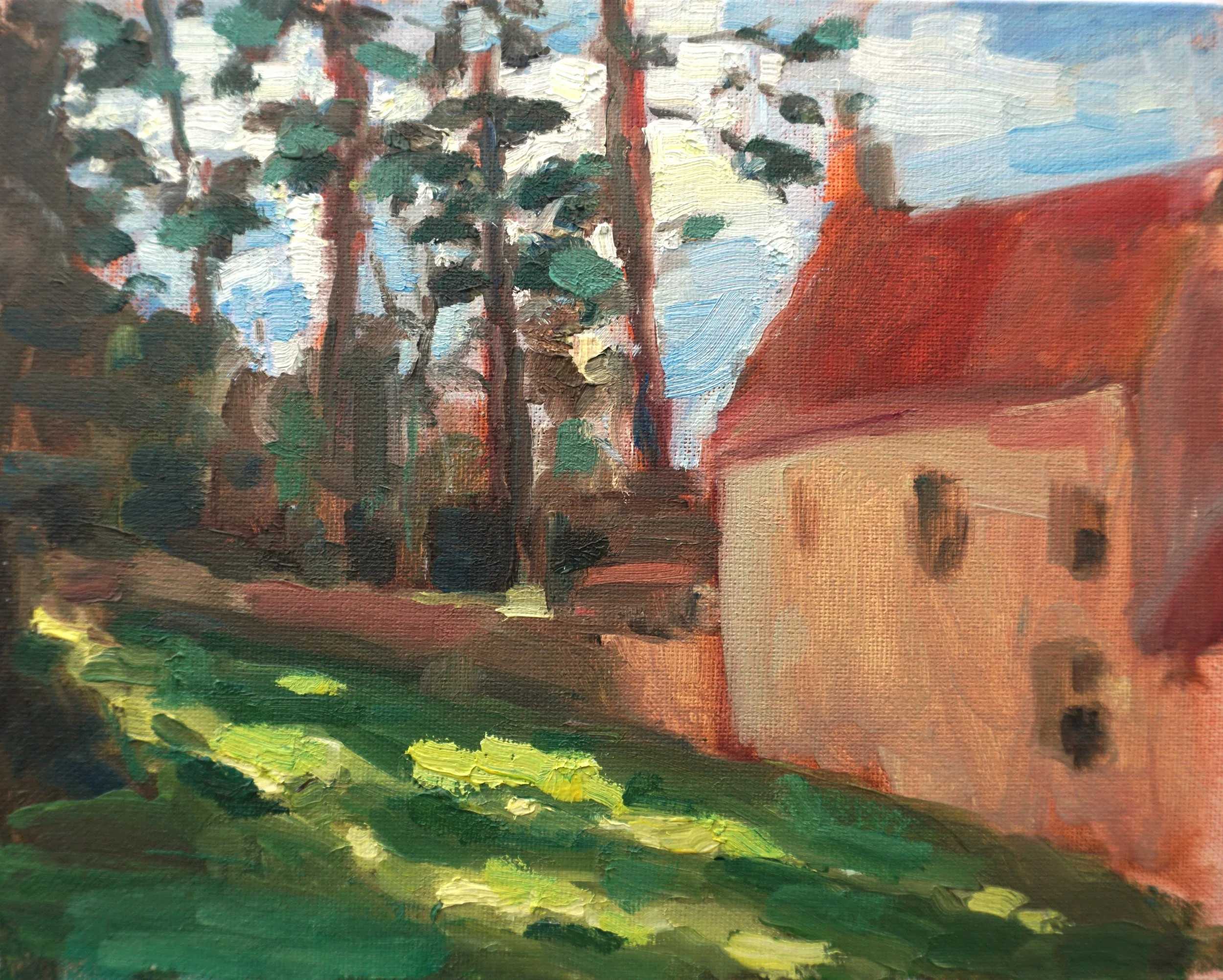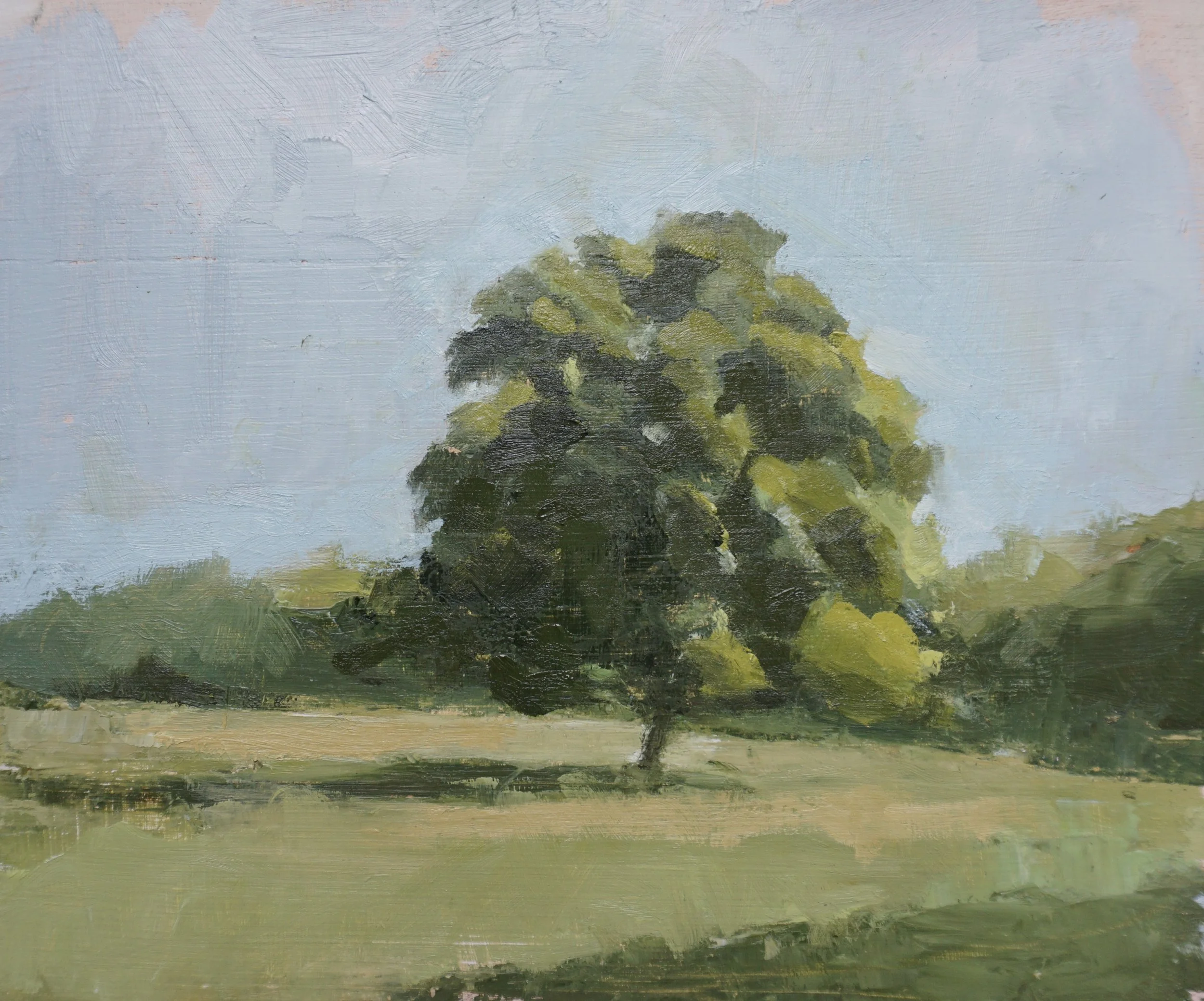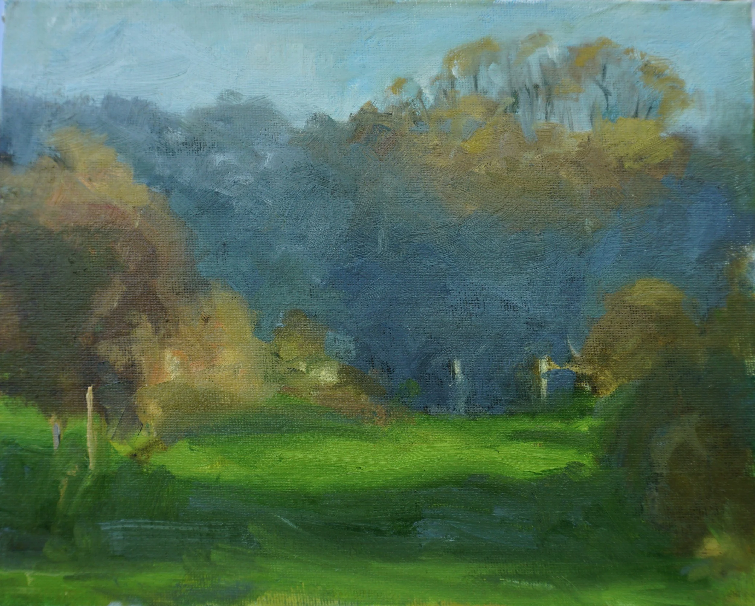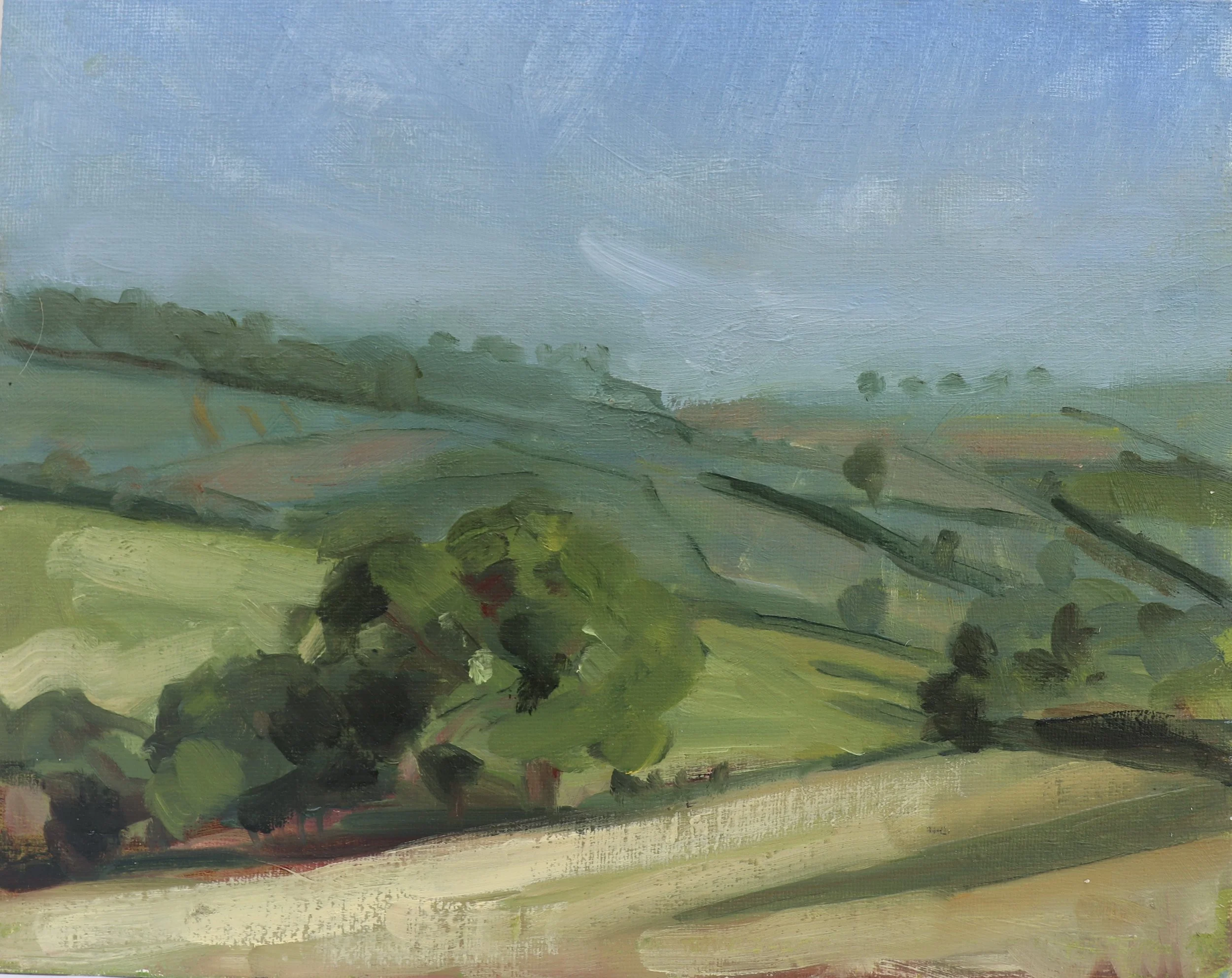 Mostly local rural Somerset farmland, painted in different lights and seasons. And then there is the sky!